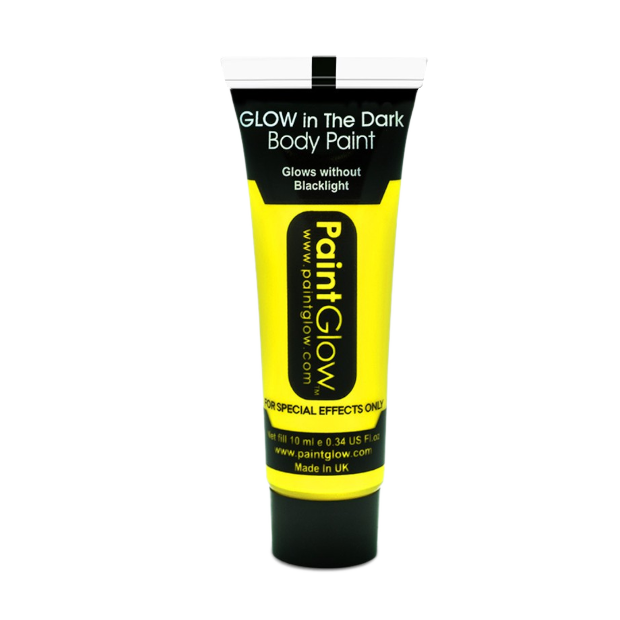 Glow in the dark face & bodypaint van Paintglow geel verandert je lichaam en gezicht in een waar lichtgevend kunstwerk. Paintglow’s glow in the dark face & bodypaint is ideaal voor professioneel gebruik maar ook zeker geschikt als bodypaint voor op een feestje. De verf is fluoriserend, blijft de hele nacht zitten en is ook al fel zonder blacklight. Trek urenlang de aandacht op elk feestje.