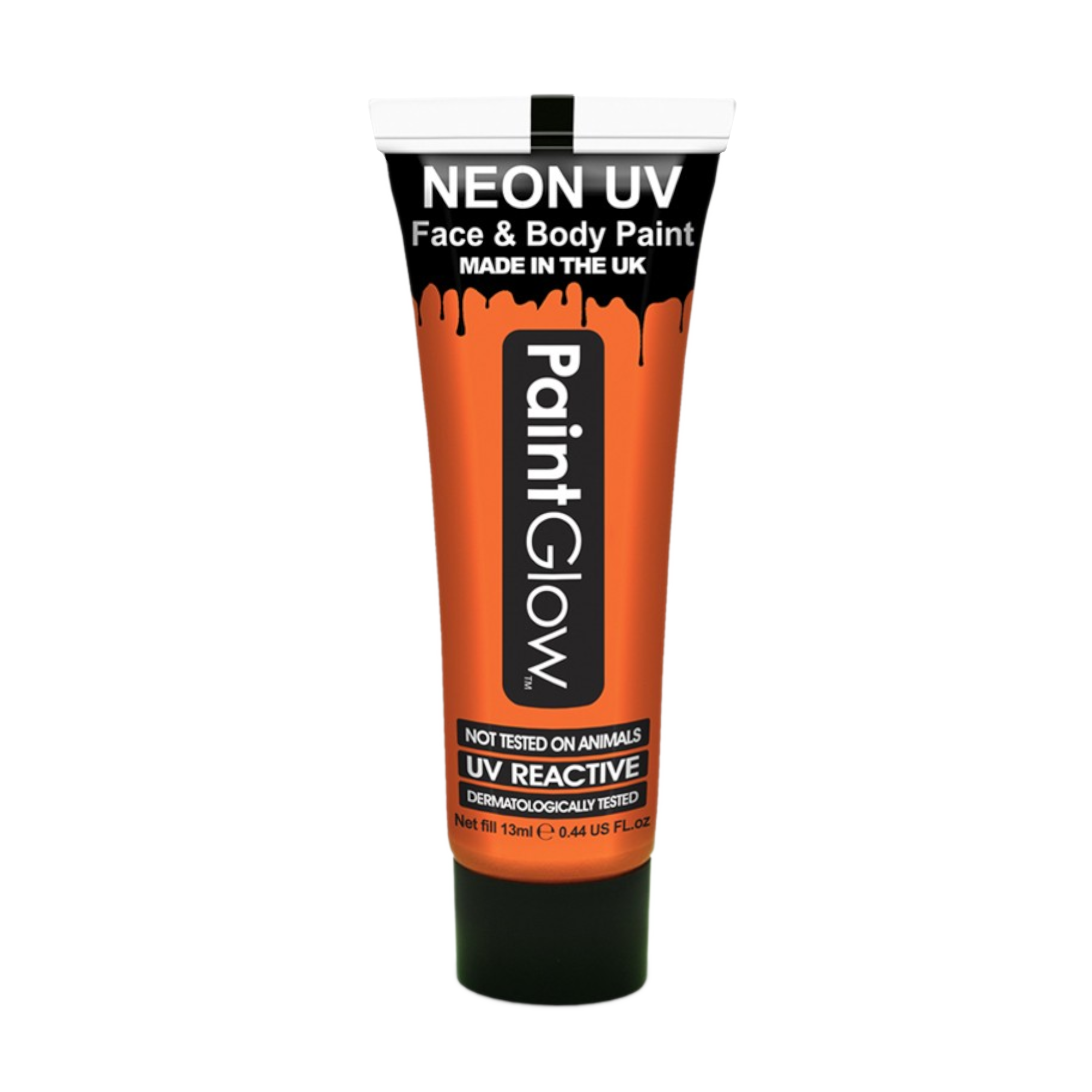 UV Face & Bodypaint van Paintglow oranje verandert je lichaam en gezicht in een waar lichtgevend kunstwerk. Paintglow’s UV Face & Bodypaint is ideaal voor professioneel gebruik maar ook zeker geschikt als bodypaint voor op een feestje. De verf is fluoriserend, blijft de hele nacht zitten en licht spectaculair op onder blacklight. Trek urenlang de aandacht op elk feestje.