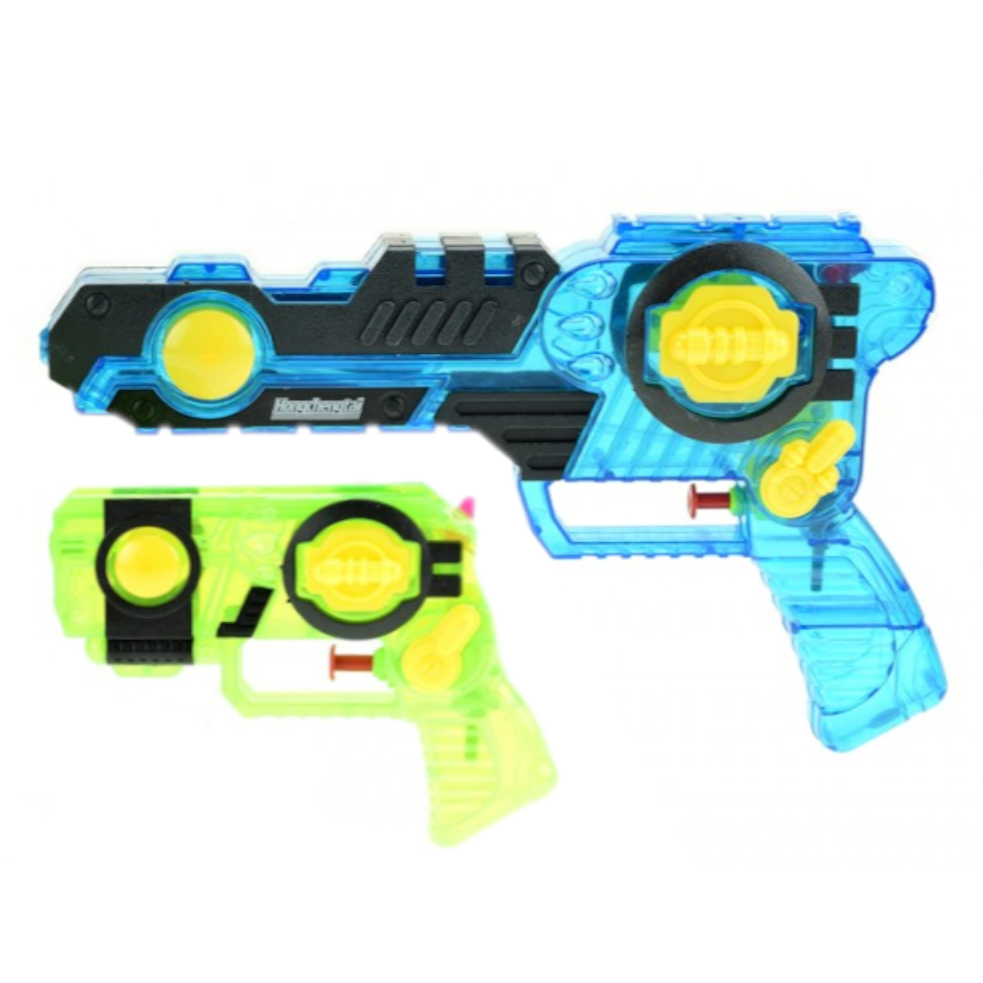 2 Waterpistolen die in elkaar kunnen worden geklikt. De afmetingen van dit waterpistool is 4 x 22 x 36 cm.