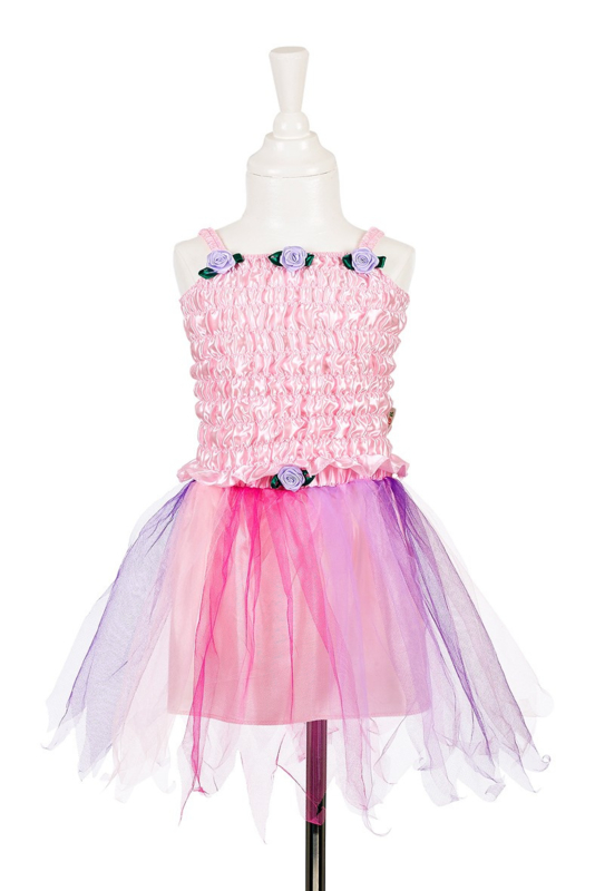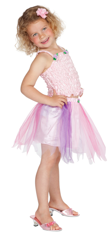 Lief Prinsessen Setje Jalissa met Topje en rokje in roze en paars met roosjes afgezet +