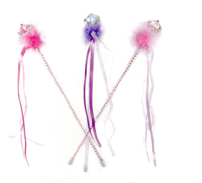 Mooi Prinsessen Stafje met roze of paarse veertjes, linten en diamant hart.